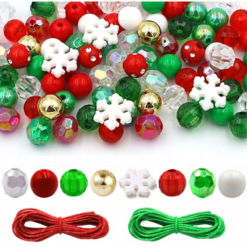 New ZESTAW KORALIKÓW ŚWIĄTECZNYCH KORALIKI ŚWIĄTECZNE 100szt + 2 SZNURKI View larger