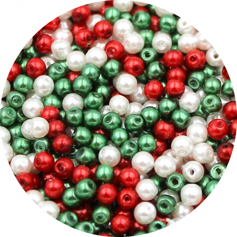 Koraliki PERŁY SZKLANE 4mm Perełki Kuleczki Mix Święta Mikołaj 100szt
