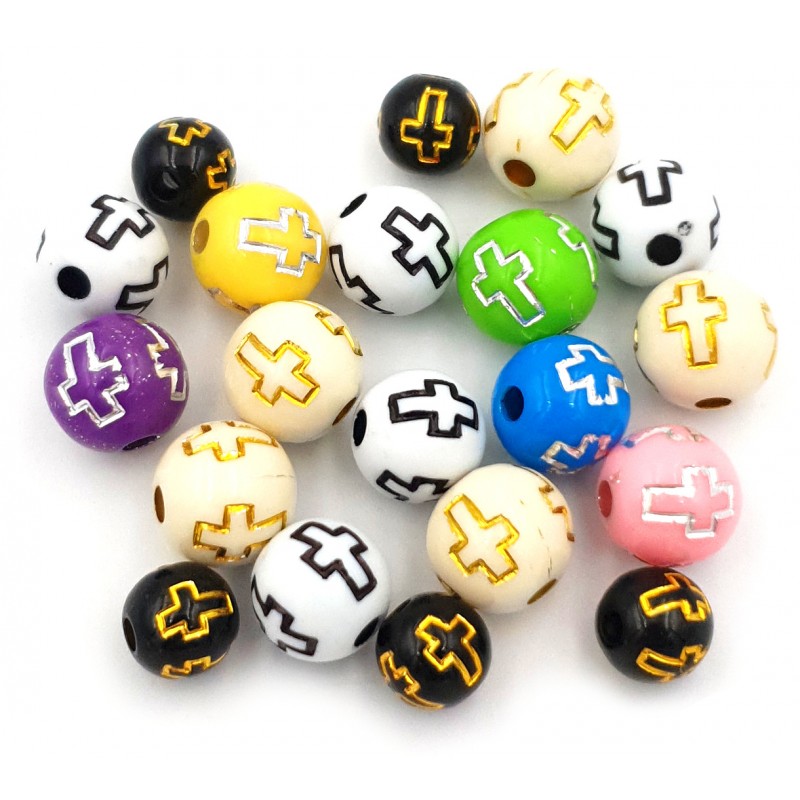 KORALIKI KULE Z KRZYŻEM KRZYŻE DO RÓZAŃCA KRZYŻYKI AKRYL 8-10mm 20szt MIX View larger