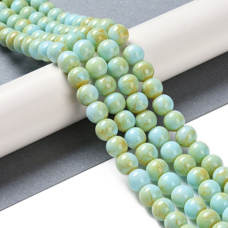 KORALIKI SZKLANE MARMURKI 8mm 50szt DO BRANSOLETEK RÓŻAŃCA BŁĘKITNO-ŻÓŁTE