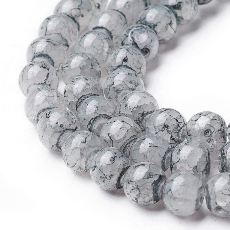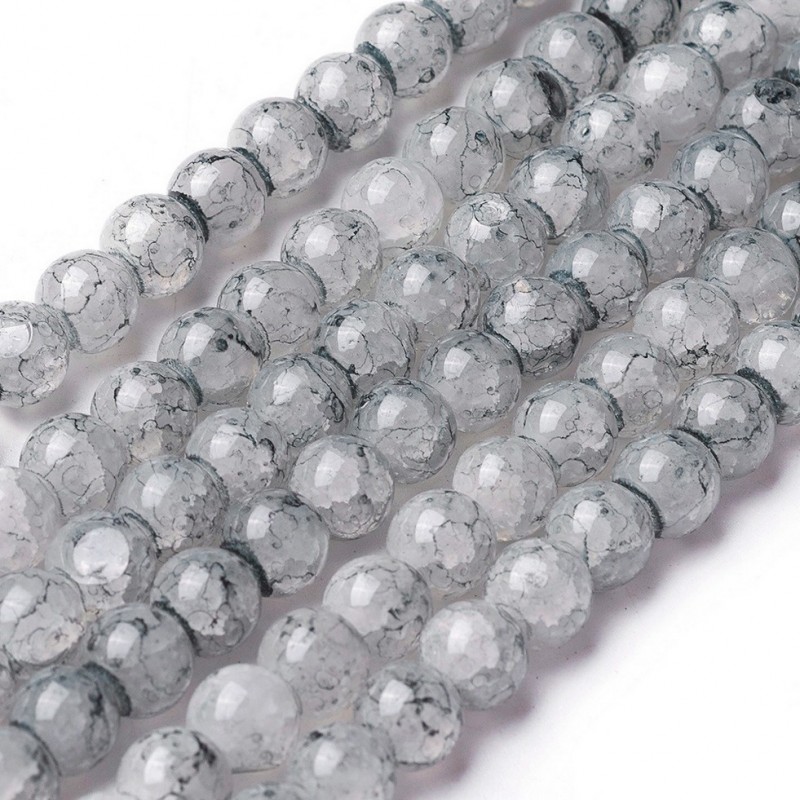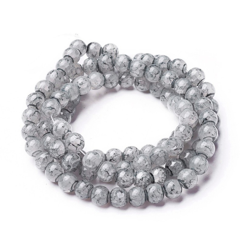 KORALIKI SZKLANE MARMURKI MLECZNE 8mm 50szt DO BRANSOLETEK RÓŻAŃCA BIAŁO-CZ