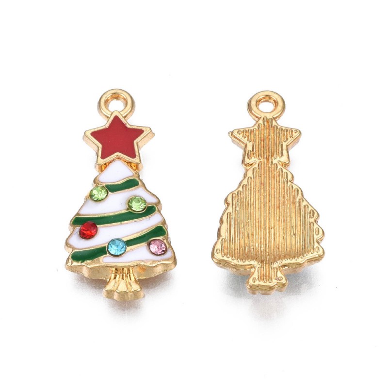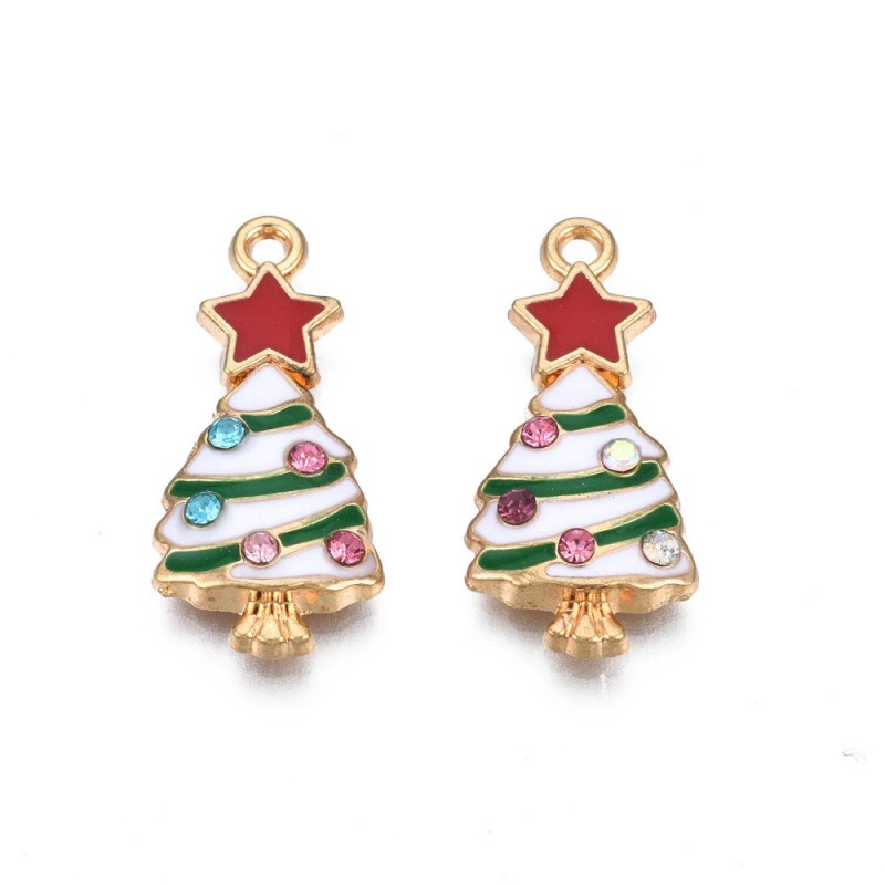 ZAWIESZKA EMALIOWANA CHARMS CHOINKA Z CYRKONIAMI ŚWIĘTA OZDOBY WISIOREK 2szt