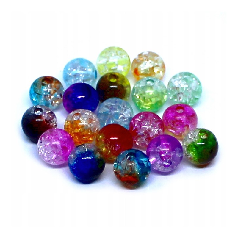 Koraliki ozdobne crackle to lekkie koraliki akrylowe. Posiadają one wzorek w postaci pęknięć na każdym koraliku, które pięknie ozdobią i podkreślą wykonywaną biżuterię.