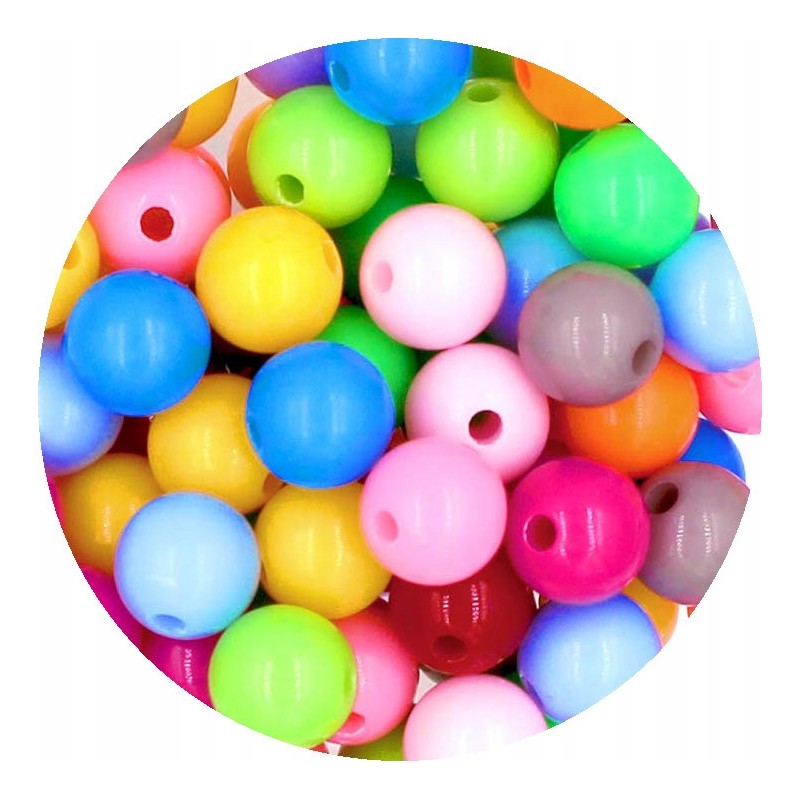 Przedmiotem sprzedaży są lekkie koraliki akrylowe w kształcie kulki. Idealnie nadają się do wyrobu bransoletek i innych ozdób. Doskonałe do prac ręcznych.