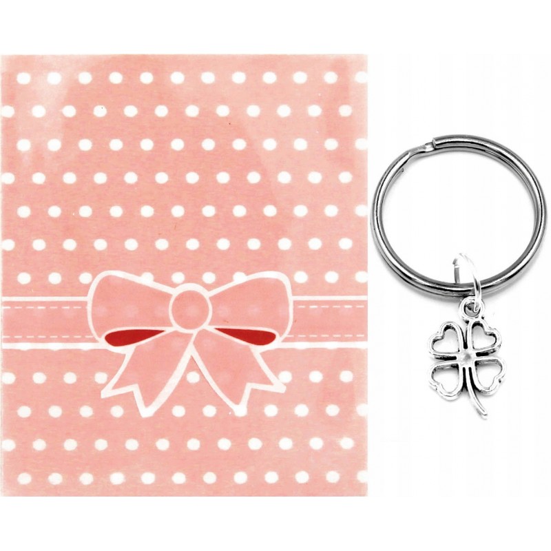 Przedmiotem sprzedaży jest breloczek z koniczyną, do którego dołączony jest ozdobny celofan z nadrukiem. Może być on formą podziękowania lub upominku.