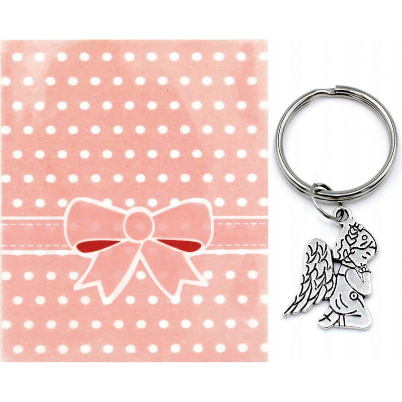 Przedmiotem sprzedaży jest breloczek z aniołkiem, do którego dołączony jest ozdobny celofan z nadrukiem. Może być on formą podziękowania lub upominku.
