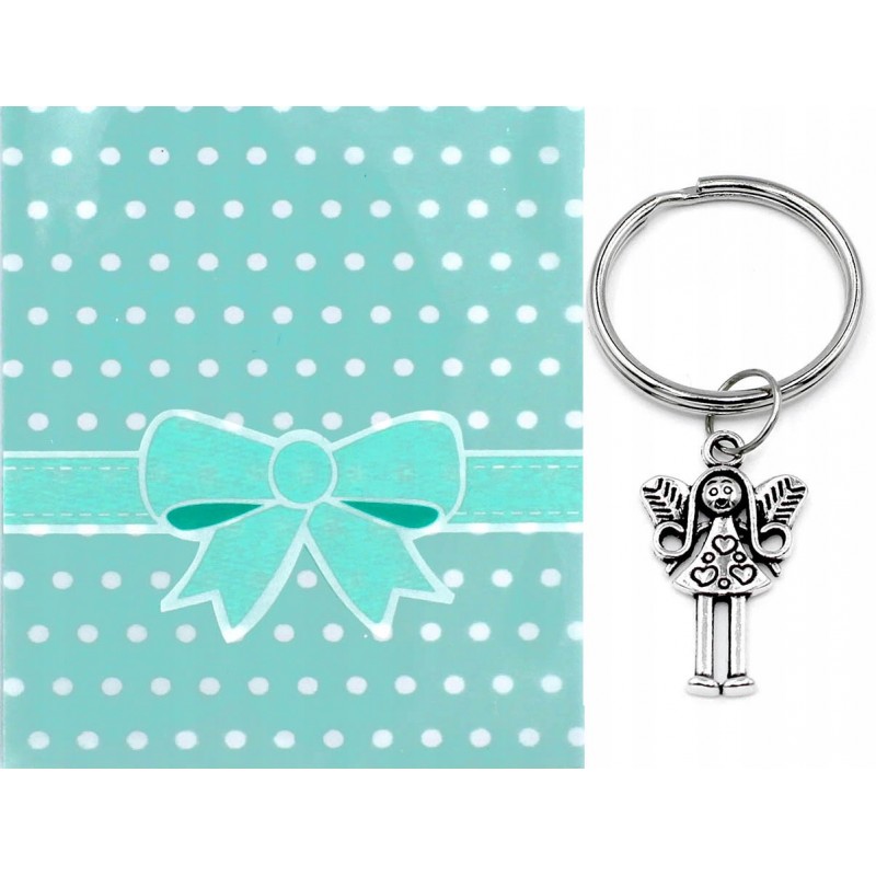 Przedmiotem sprzedaży jest breloczek z aniołkiem, do którego dołączony jest ozdobny celofan z nadrukiem. Może być on formą podziękowania lub upominku.