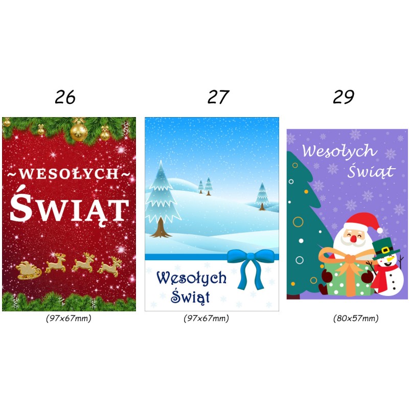 Po zakupie prosimy o podanie wybranego numeru kartek ( numerki znajdują się nad karteczkami). W przypadku nie podania wybranego wzoru wysyłamy kartki losowo.