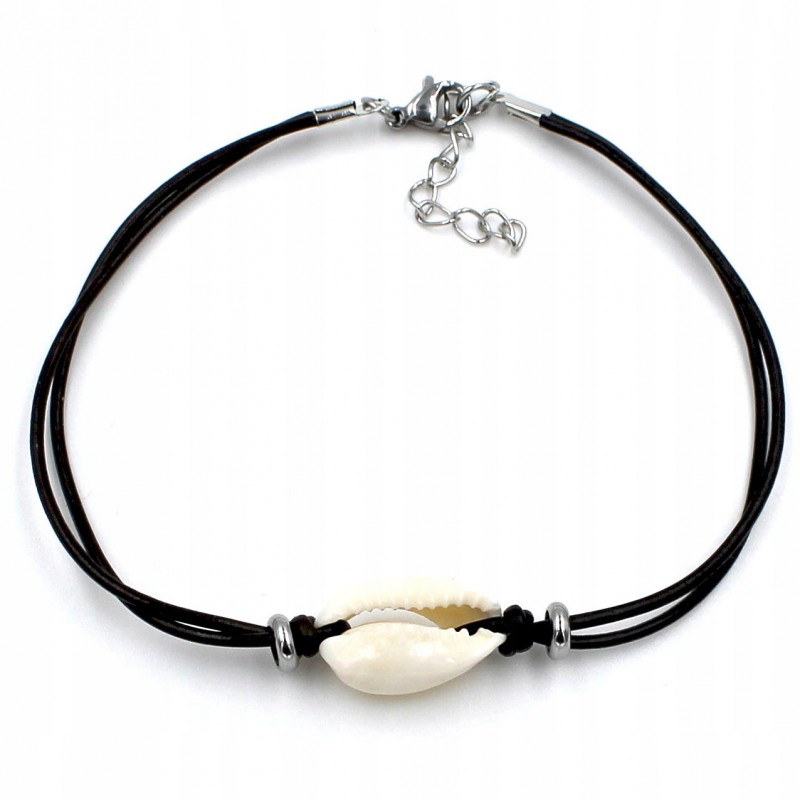 Materiał: metal, muszla naturalna, rzemień skórzany