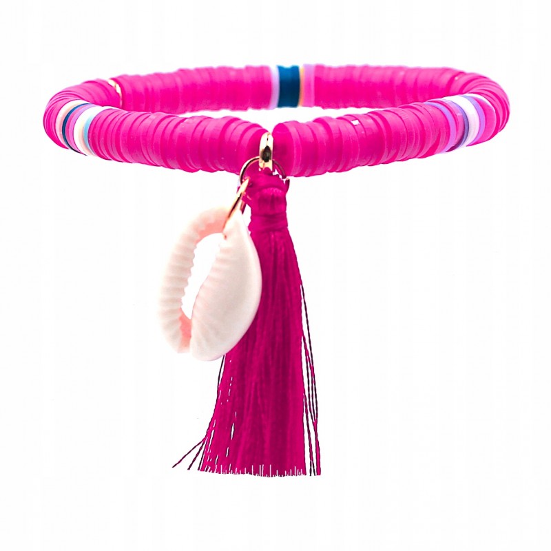 Materiał: koraliki z masy polimerowej, gumka silikonowa, muszla naturalna, chwost