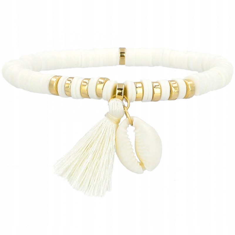 Materiał: koraliki z masy polimerowej, gumka silikonowa, muszla naturalna, chwost