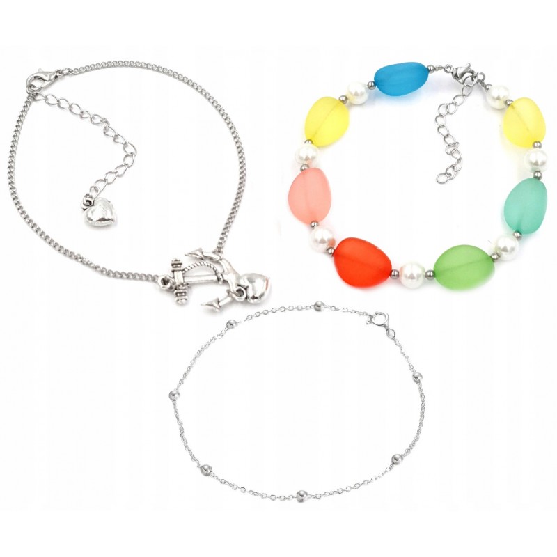 ZESTAW BRANSOLETKI NA NOGĘ KOSTKĘ LATO WAKACJE 3szt KOTWICA ŁAŃCUSZEK