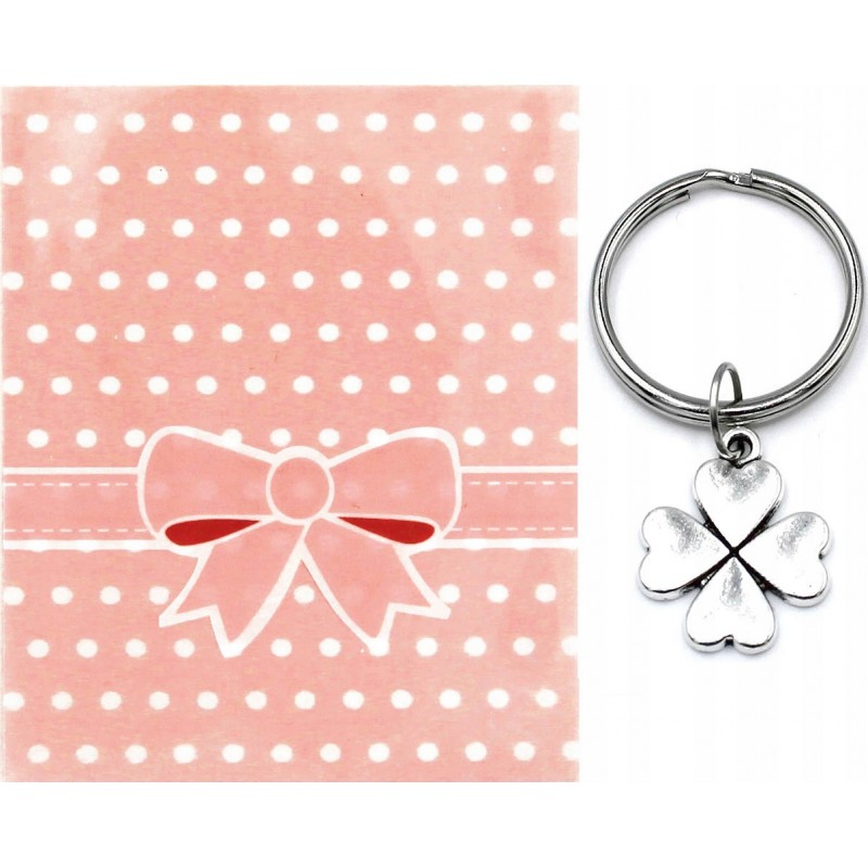 Przedmiotem sprzedaży jest breloczek z koniczyną, do którego dołączony jest ozdobny celofan z nadrukiem. Może być on formą podziękowania lub upominku.