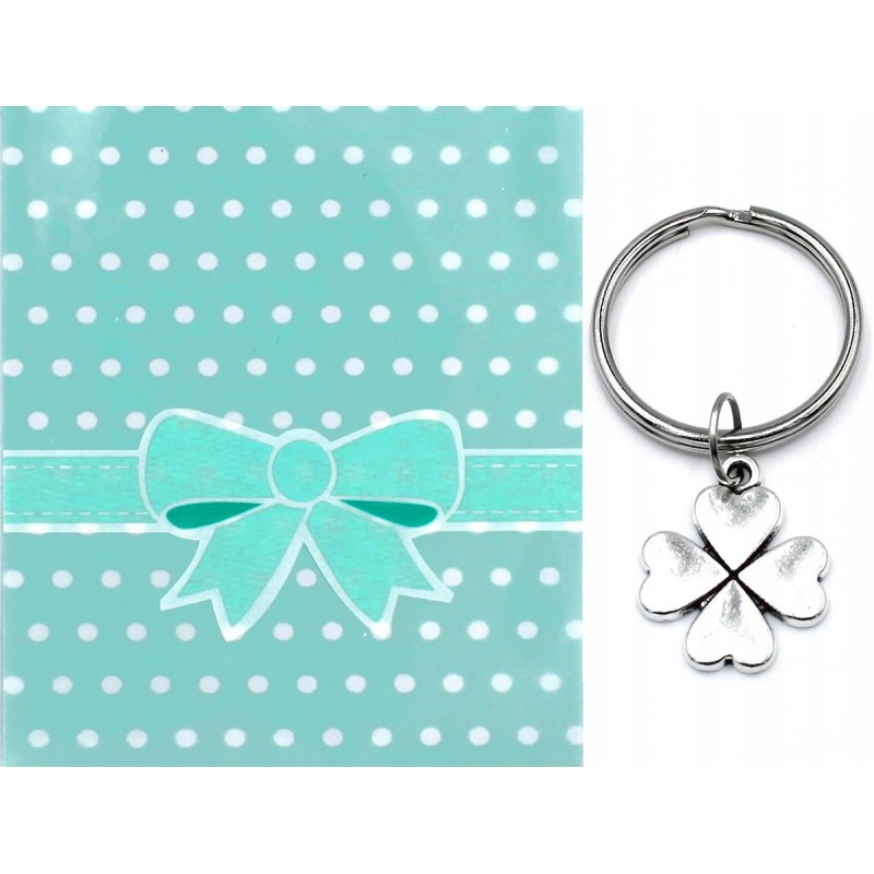 Przedmiotem sprzedaży jest breloczek z koniczyną, do którego dołączony jest ozdobny celofan z nadrukiem. Może być on formą podziękowania lub upominku.