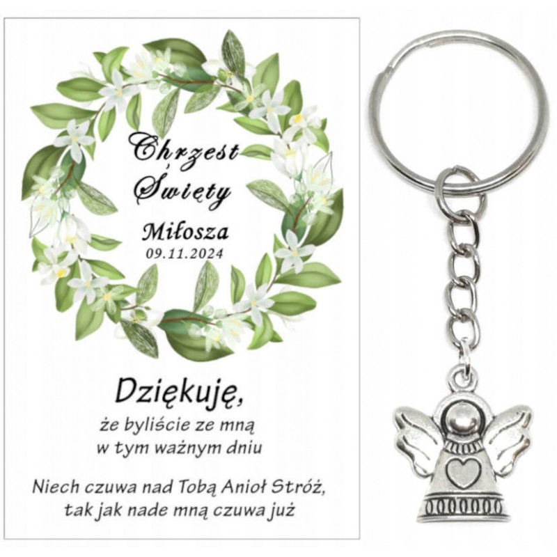 A5 Podziękowanie dla gości na CHRZEST ŚWIĘTY BRELOK ANIOŁEK UPOMINEK