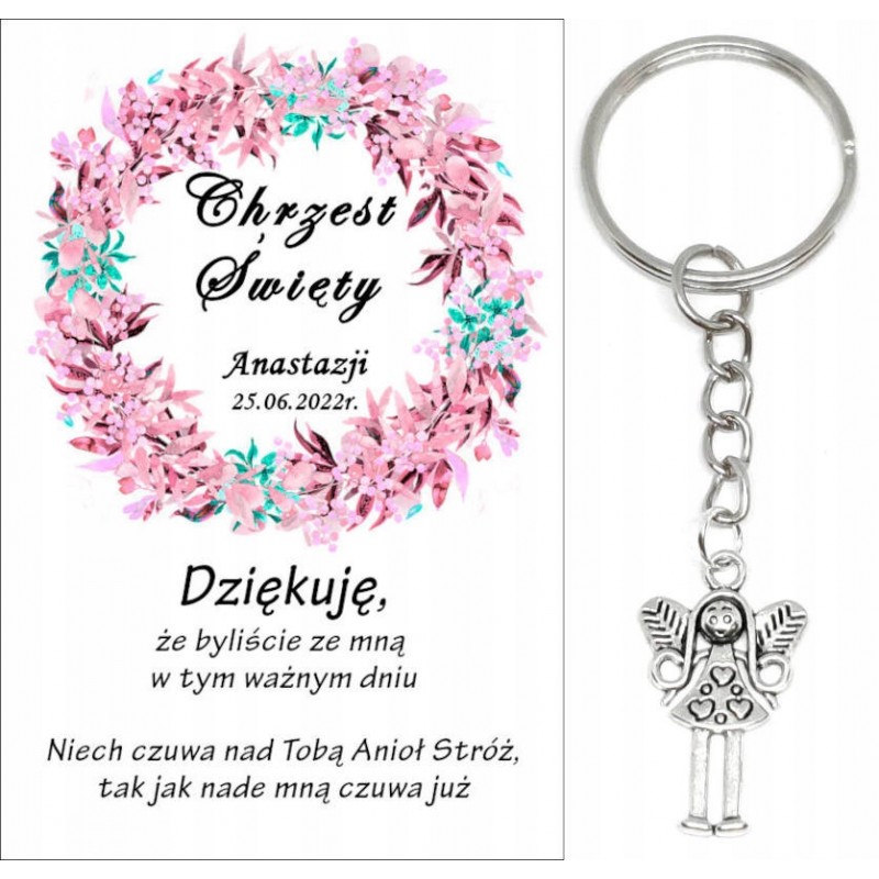 A2 Podziękowanie dla gości na CHRZEST ŚWIĘTY BRELOK ANIOŁEK UPOMINEK