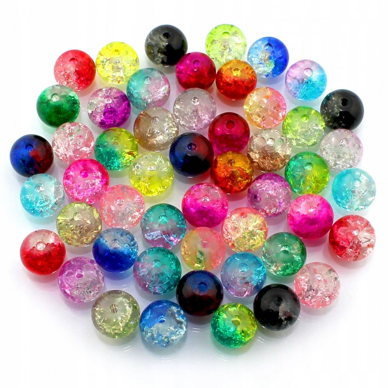 KORALIKI CRACKLE SZKŁO 8mm MIX dwubarwne 50SZT