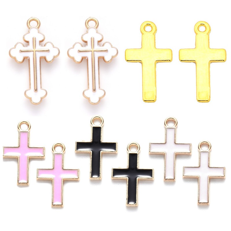 Zestaw zawieszek krzyżyków, które idealnie nadadzą się do wyrobu różańców, bransoletek, naszyjników lub innych dodatków.