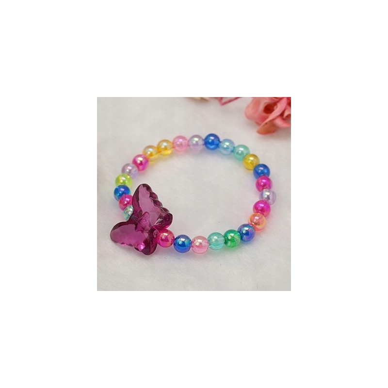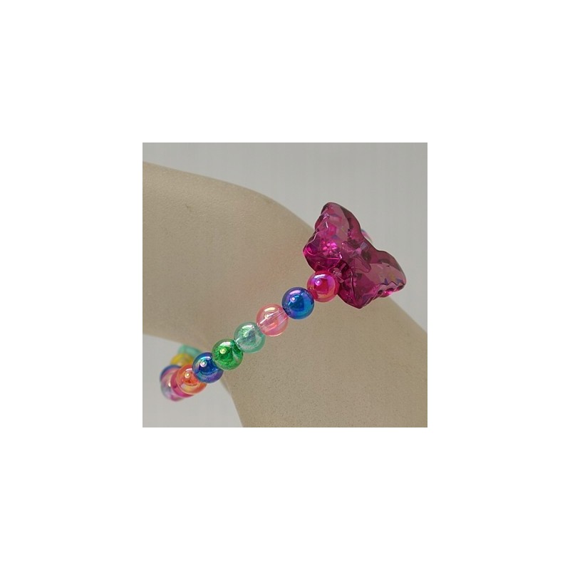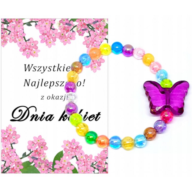 Przedmiotem sprzedaży jest bransoletka z koralików akrylowych 6mm. Rozmiary motylka to 22x18mm. Piękna błyszcząca bransoletka, która zachwyci każdą małą damę. Idealna jako upominek na dzień dziecka.