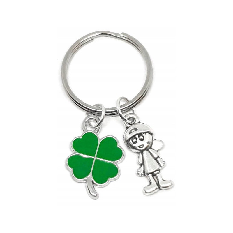 Przedmiotem sprzedaży jest breloczek z koniczynką i chłopczykiem. Może być on formą podziękowania lub upominku.