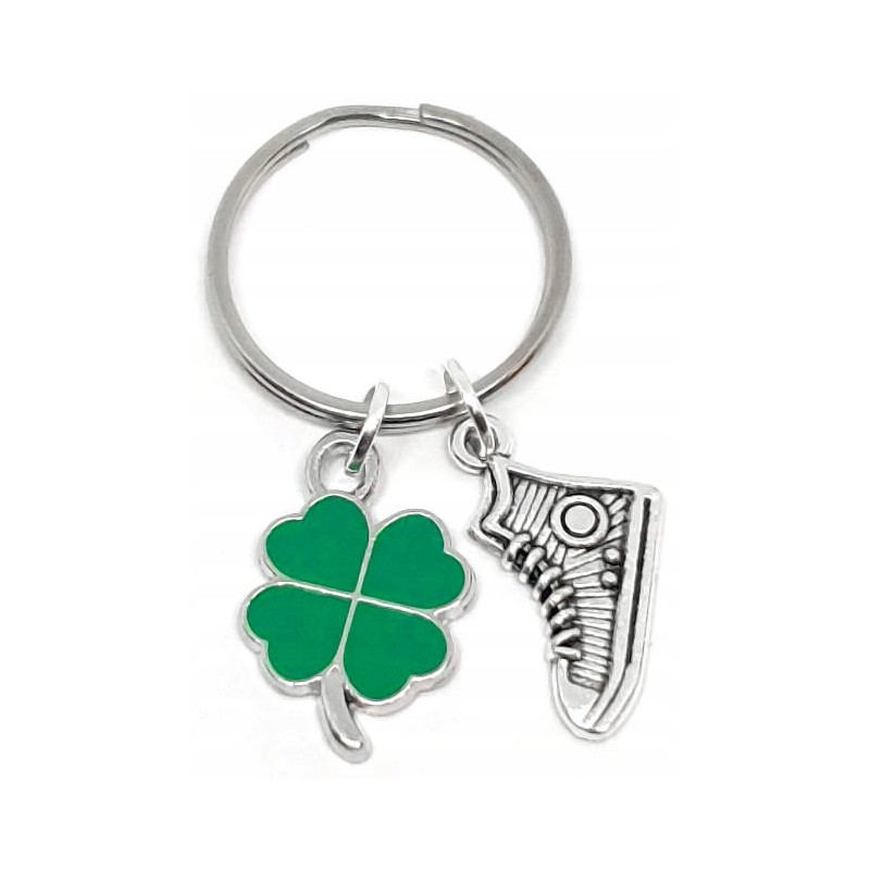 Przedmiotem sprzedaży jest breloczek z koniczynką i bucikiem trampkiem. Może być on formą podziękowania lub upominku.