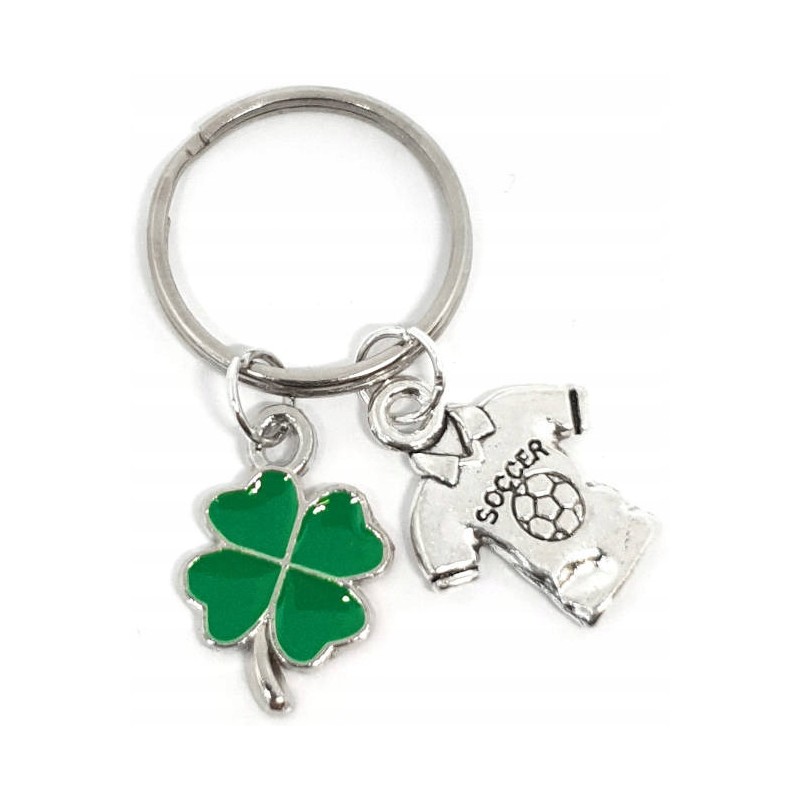 Przedmiotem sprzedaży jest breloczek z koniczynką i koszulką piłkarską. Może być on formą podziękowania lub upominku.