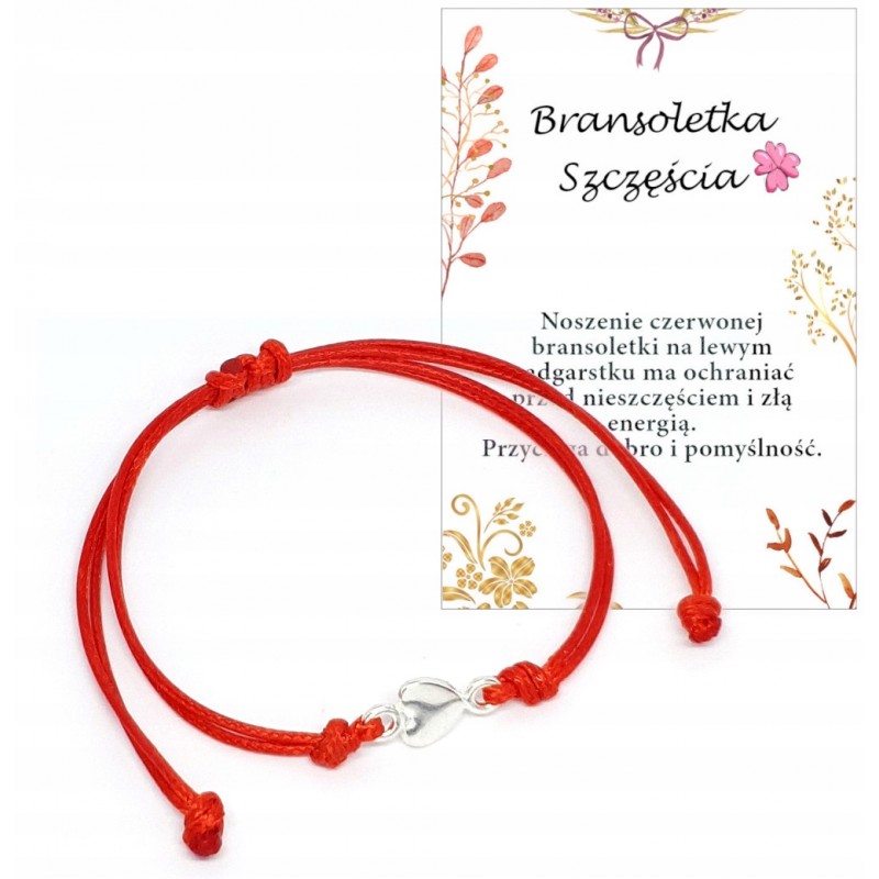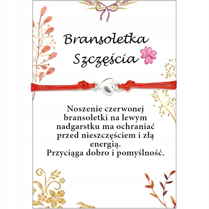 BRANSOLETKA SZCZĘŚCIA KABAŁA SERCE ZAKOŃCZENIE ROKU PREZENT CZERWONA