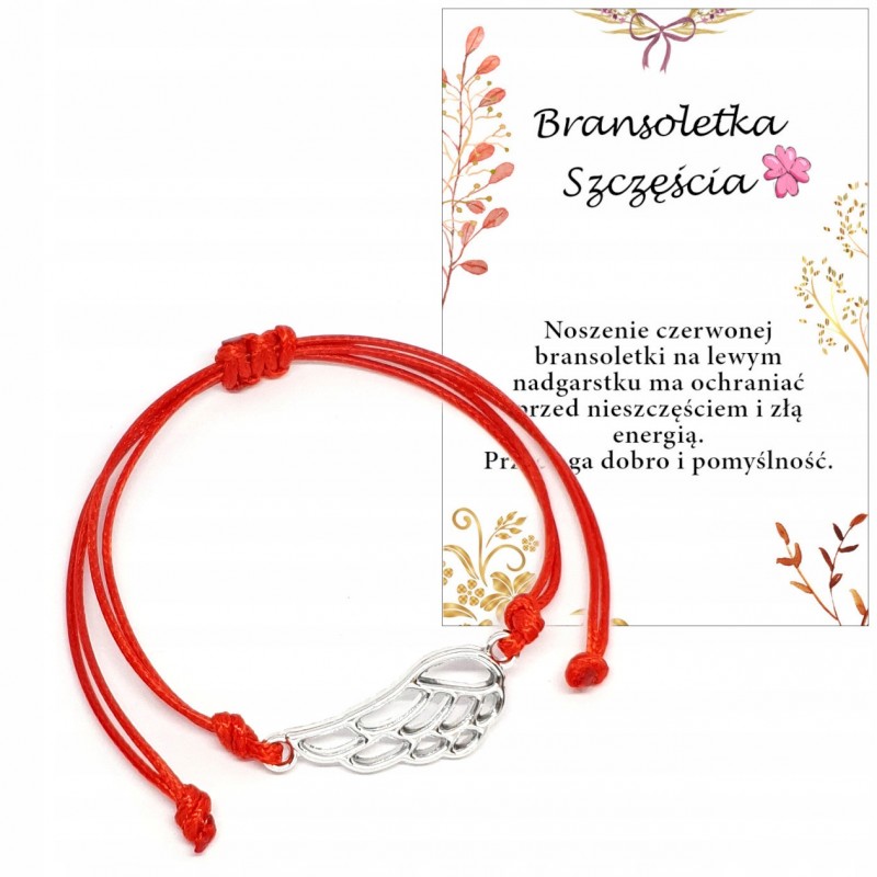 BRANSOLETKA SZCZĘŚCIA KABAŁA SKRZYDŁO ZAKOŃCZENIE ROKU PREZENT CZERWONA