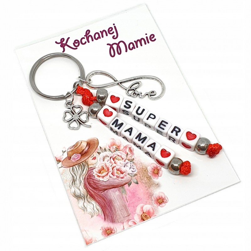 np. SUPER MAMA, serca niebieskie, kartka nr 17