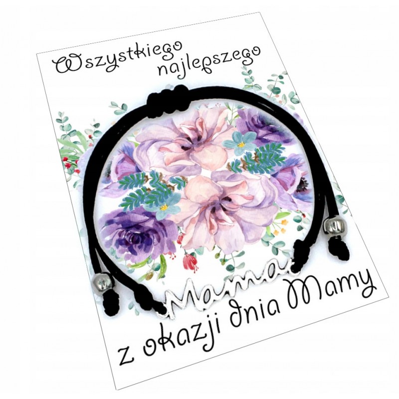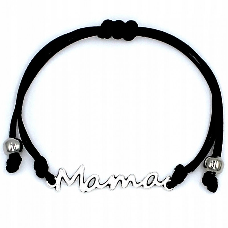 Przedmiotem sprzedaży jest bransoletka sznurkowa celebrytka z metalowym łącznikiem Mama w kolorze srebrnym.