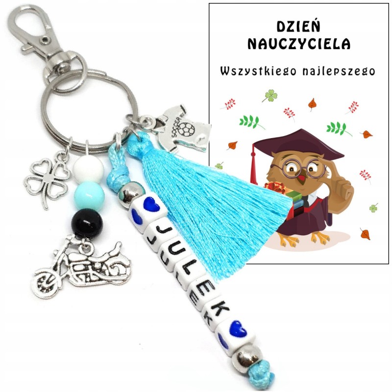 Zawieszka przy koralikach jest stałym elementem breloka.