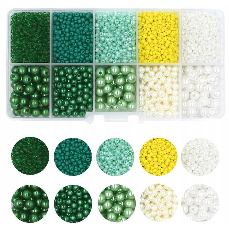 ZESTAW KORALIKI DO BRANSOLETEK PEREŁKI I SZKLANE DROBNE SEEDS ZIELONE ŻÓŁTE