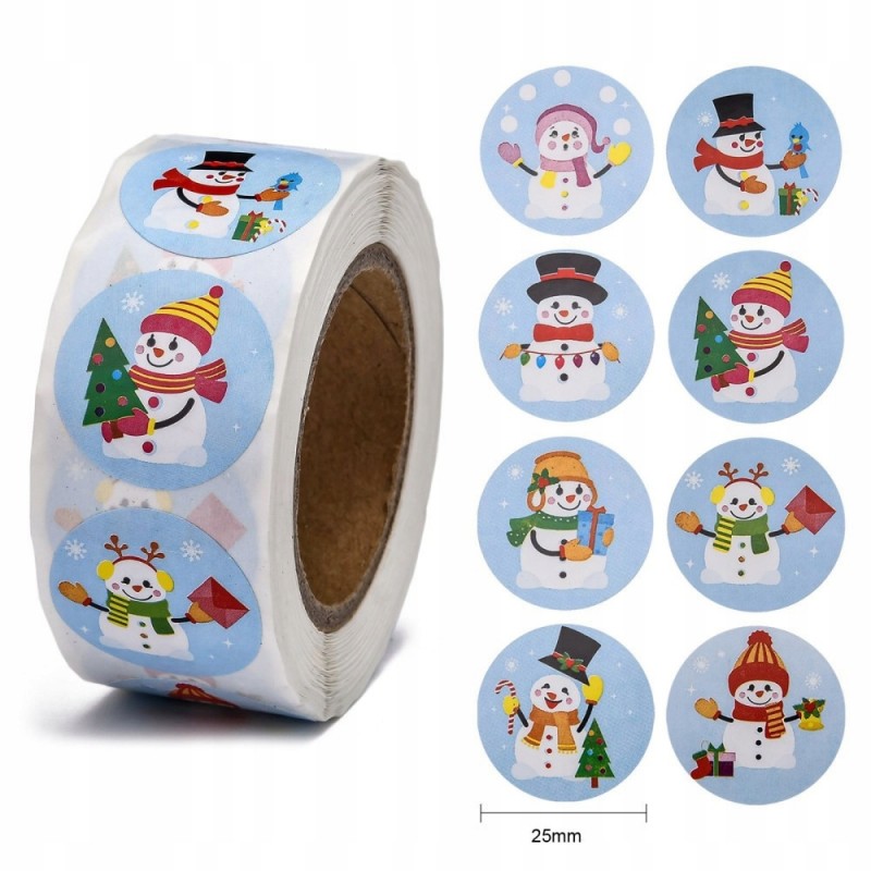 Naklejki Świąteczne do Paczek Prezentów Kartek Święta Bałwanki Mikołaj 50sz