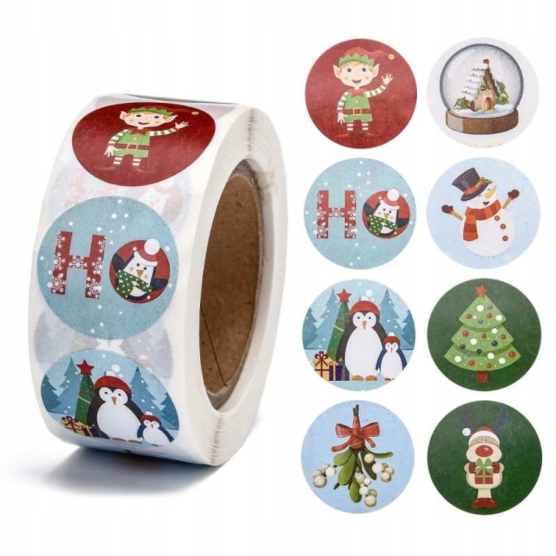Naklejki Świąteczne do Paczek Prezentów Święta Mikołaj Gwiazdka Rolka 500sz