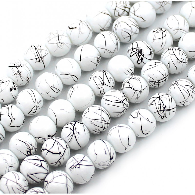 Koraliki szklane plamisste nici to koraliki, które pokryte są unikalnymi wzorami - w kształcie nitek. Dodadzą wyjątkowości każdej biżuterii, która zostanie z nich wykonana. Koraliki te przeznaczone są zarówno do bransoletek, naszyjników, kolczyków oraz np. różańców i innych dodatków.