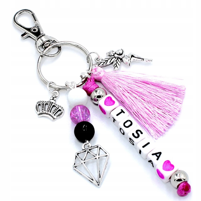 Zawieszka przy koralikach jest stałym elementem breloka.