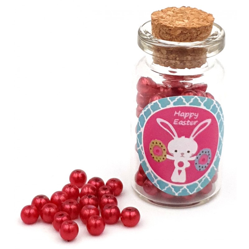 Prezentowany produkt to koraliki perełki o średnicy 4mm zapakowane w szklaną buteleczki z modną naklejką.