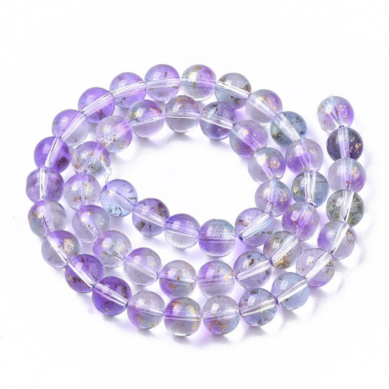 Koraliki szklane zezłotymi płatkami to koraliki transparentne z delikatnym złotym wzorkiem. Dodadzą wyjątkowości każdej biżuterii, która zostanie z nich wykonana. Koraliki te przeznaczone są zarówno do biżuterii jak i np. różańców.