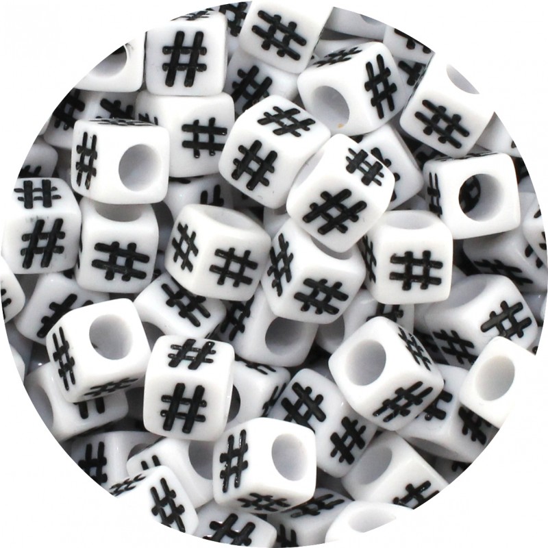 Koraliki Akrylowe Hasztag Hashtag Kostki Modułowe 6x6mm Biało Czarne 50szt