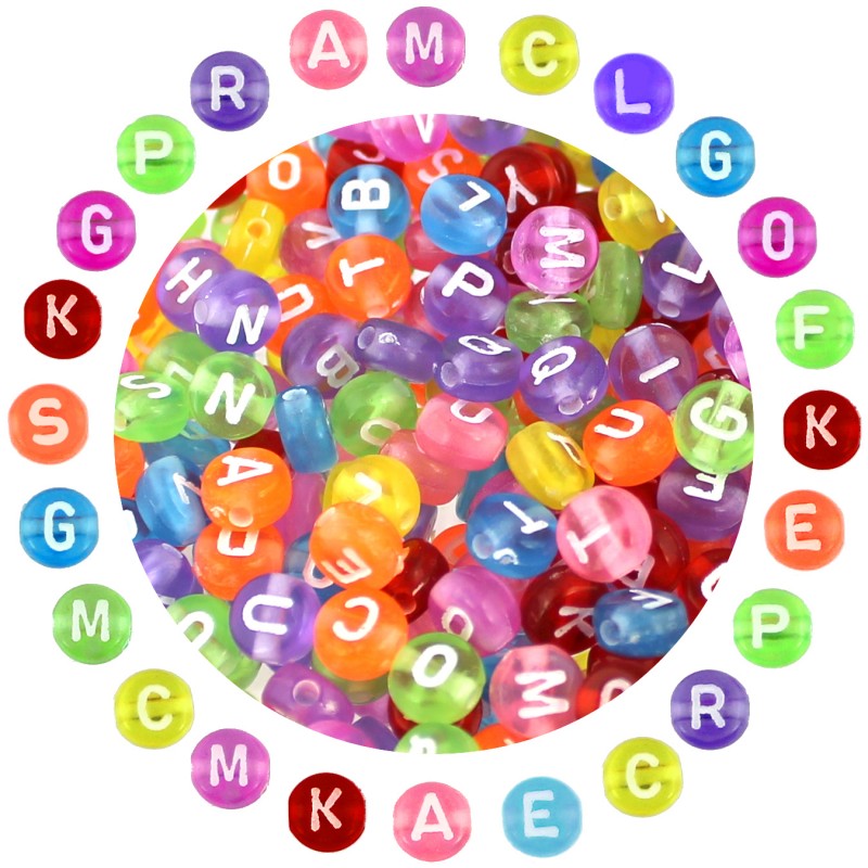 Koraliki LITERKI Alfabet Okrągłe 7mm Mix 100szt