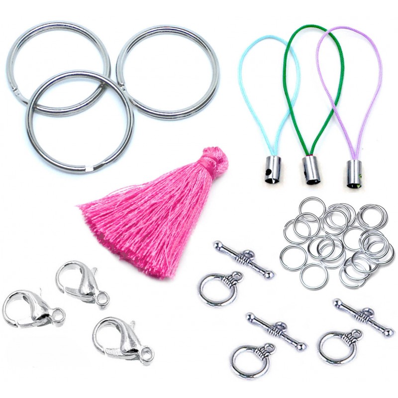 Z zestawu można stworzyć wiele niezwykłych bransoletek, naszyjników, zawieszek do telefonu, breloków.