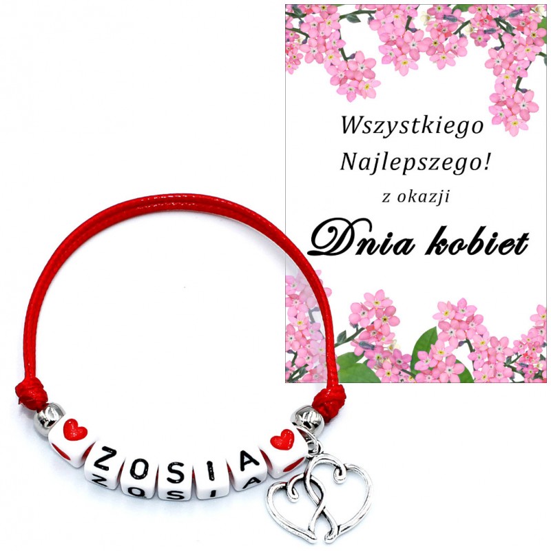 Bransoletka Imię Dzień Kobiet Kartka Serca Prezent