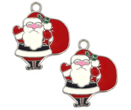 Zawieszka Emaliowana Charms Mikołaj Święta 2szt