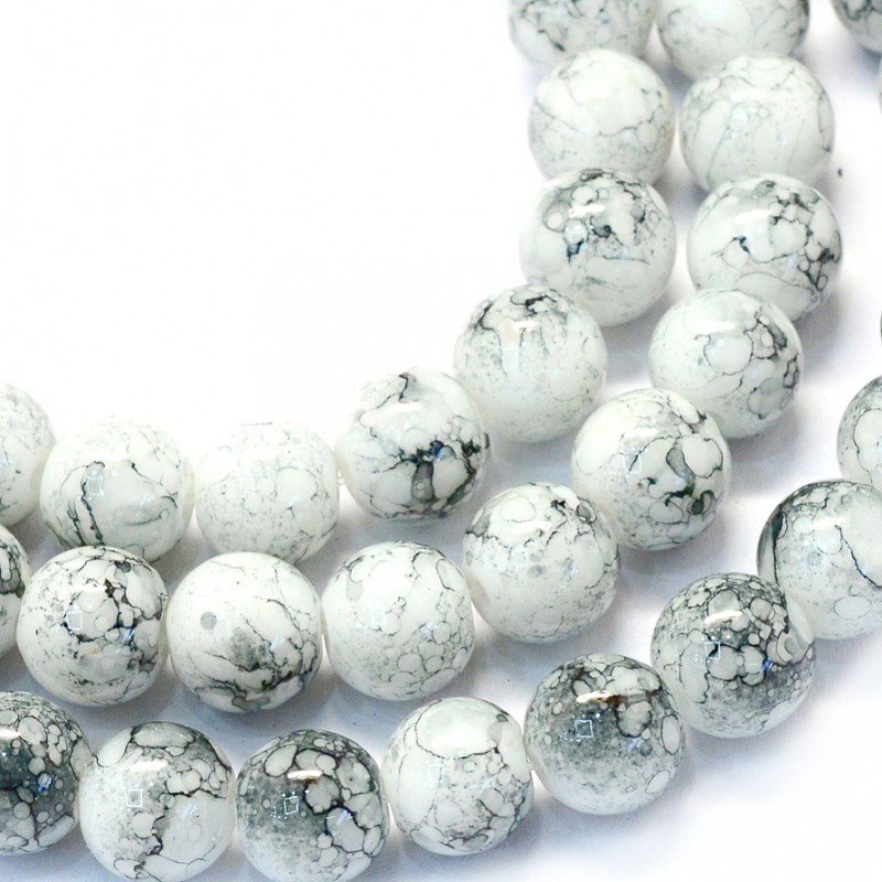 Koraliki Szklane Marmurki Biało-Czarne Kulki 8mm 20szt