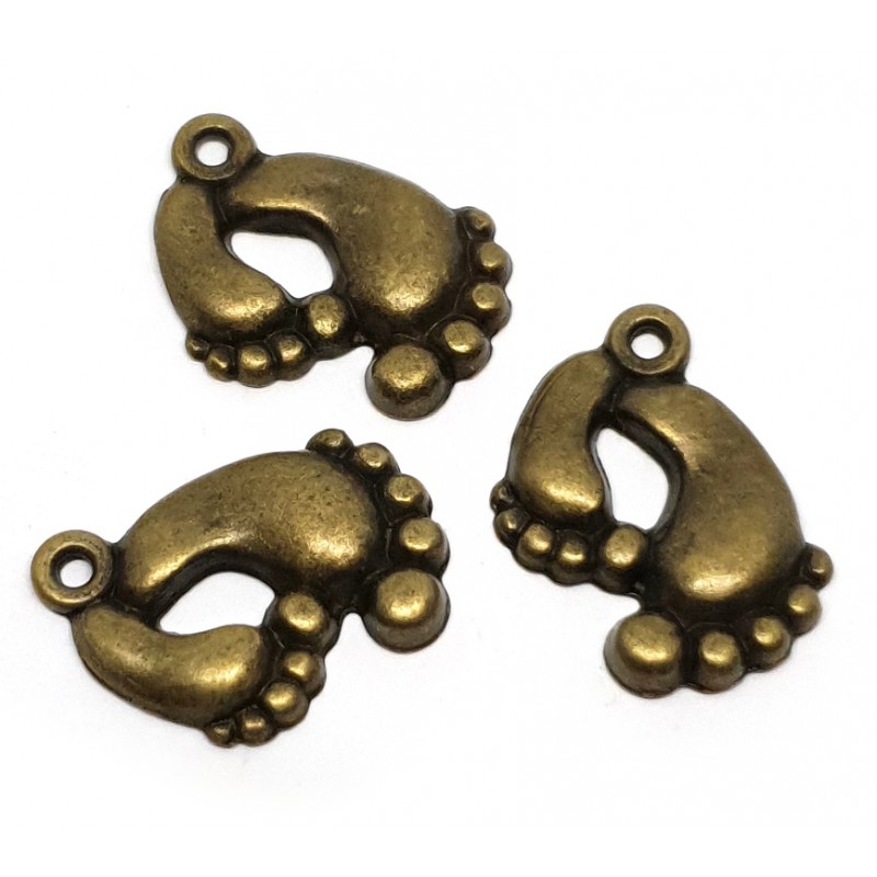 Zawieszka Metalowa Charms Stopy Stópki Stopa 20mm Brąz Antyczny