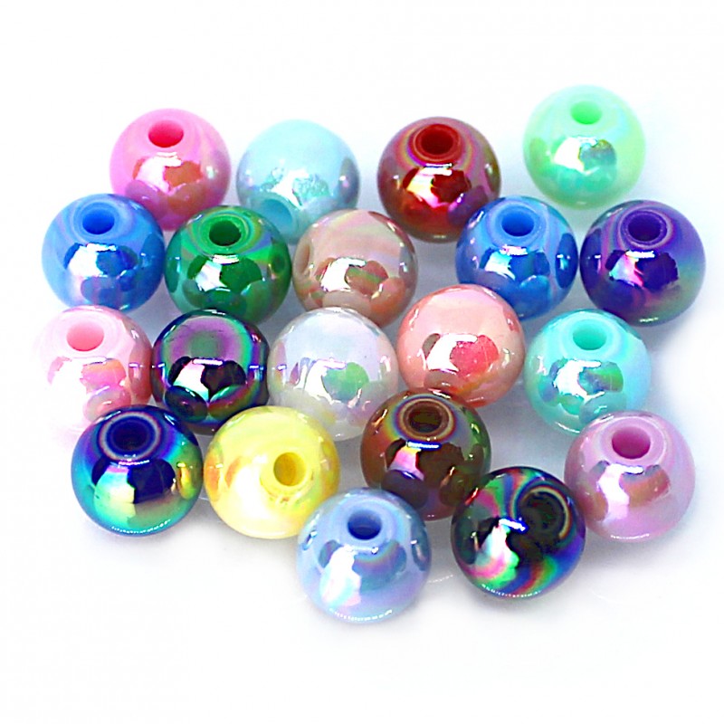 Koraliki Akrylowe Kule Kulki Opalizujące Błyszczące 8mm 100szt Mix