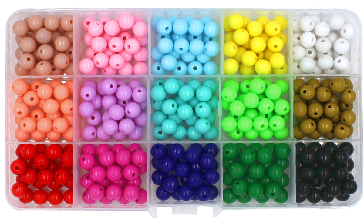 Zestaw Koraliki Gładkie 8mm 375szt Akrylowe Kulki do Bransoletek Organizer