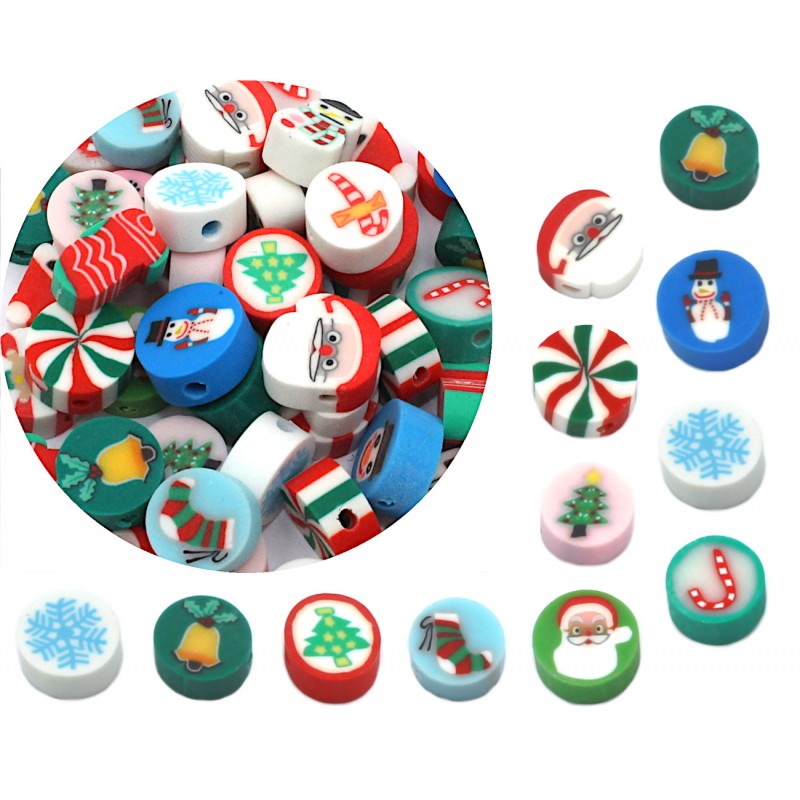 KORALIKI DO BRANSOLETEK ŚWIĄTECZNE FIMO POLIMEROWE MIKOŁAJKI MIX 20szt
