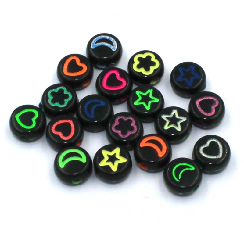 KORALIKI SERCA GWIAZDKI KSIĘŻYCE CZARNE OKRĄGŁE 20 szt