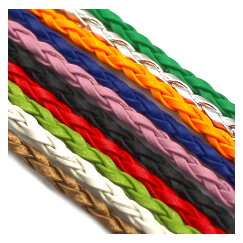 Rzemień pleciony syntetyczny 3mm 10szt (mix kolorów)